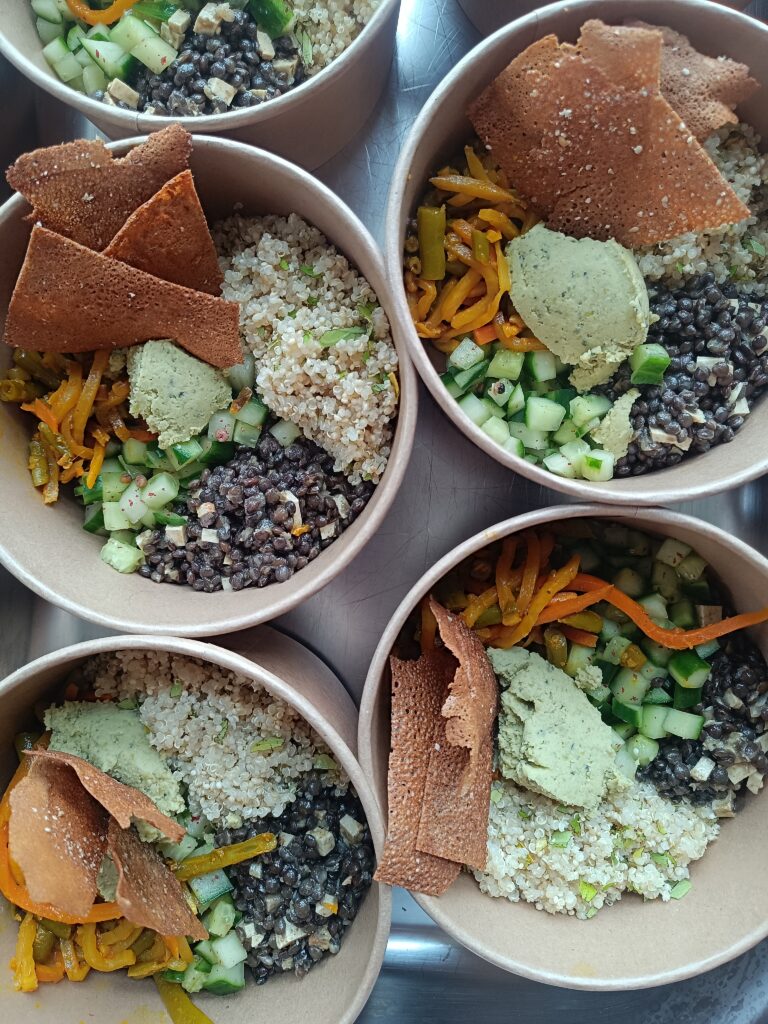Livré dans des contenants individuels réutilisables ou compostables.