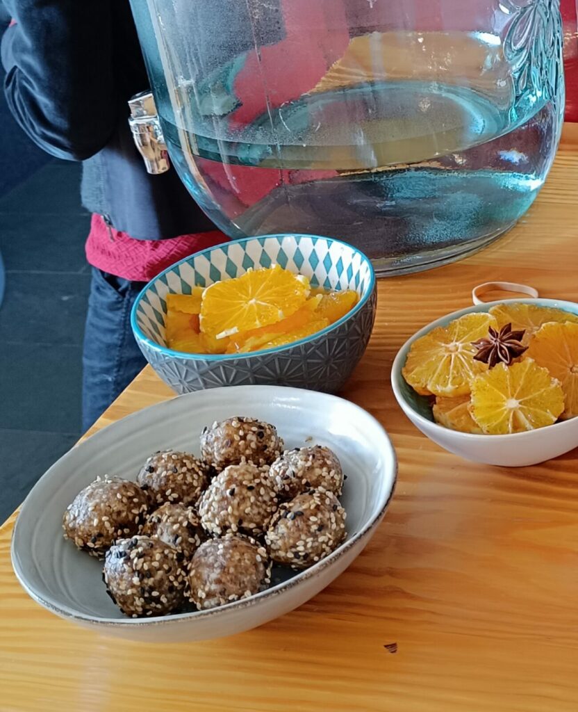 Café, Thé, Jus de fruits, Biscuits, Energy bol