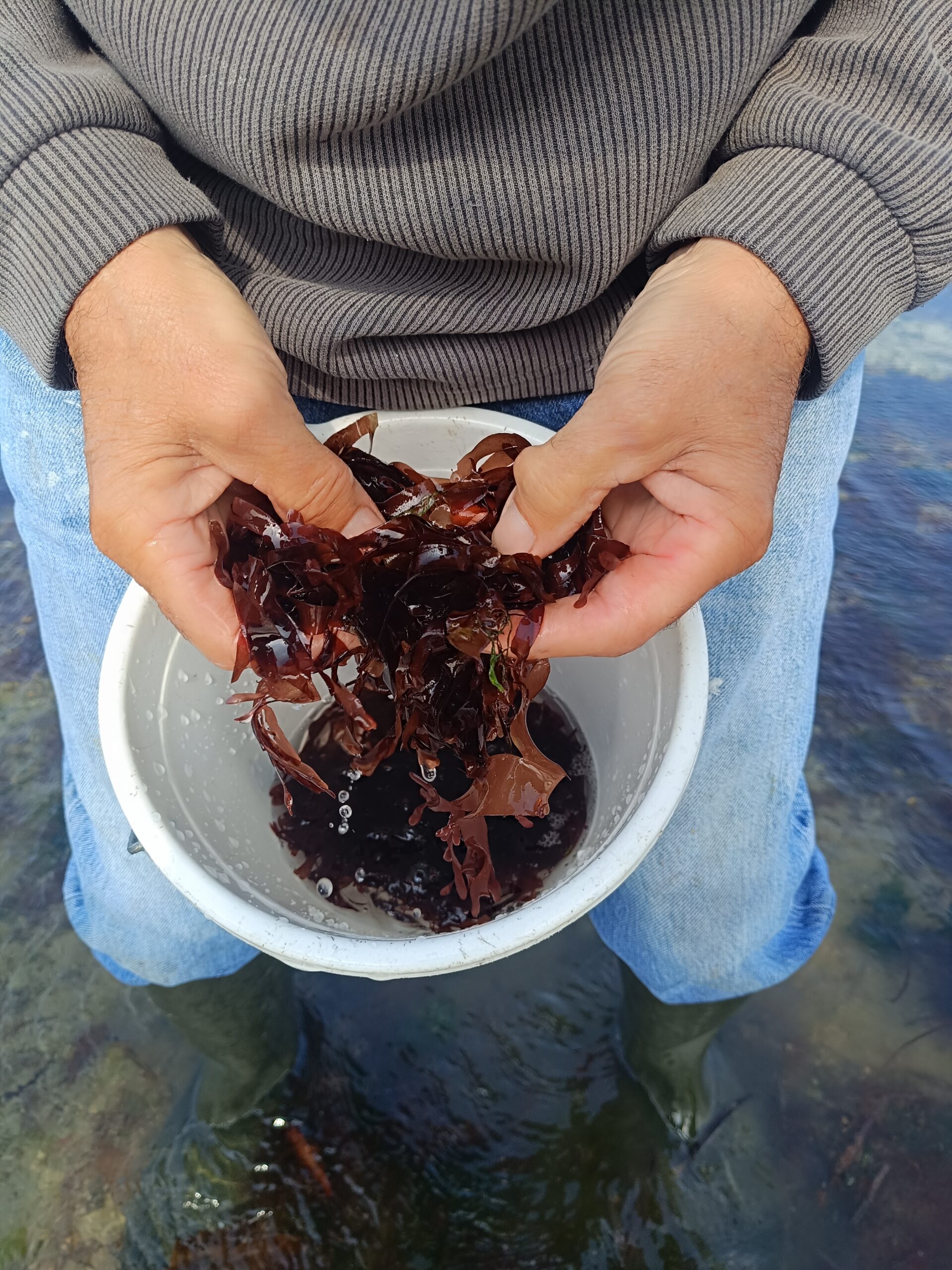 Apprentissage de la cueillette des algues.